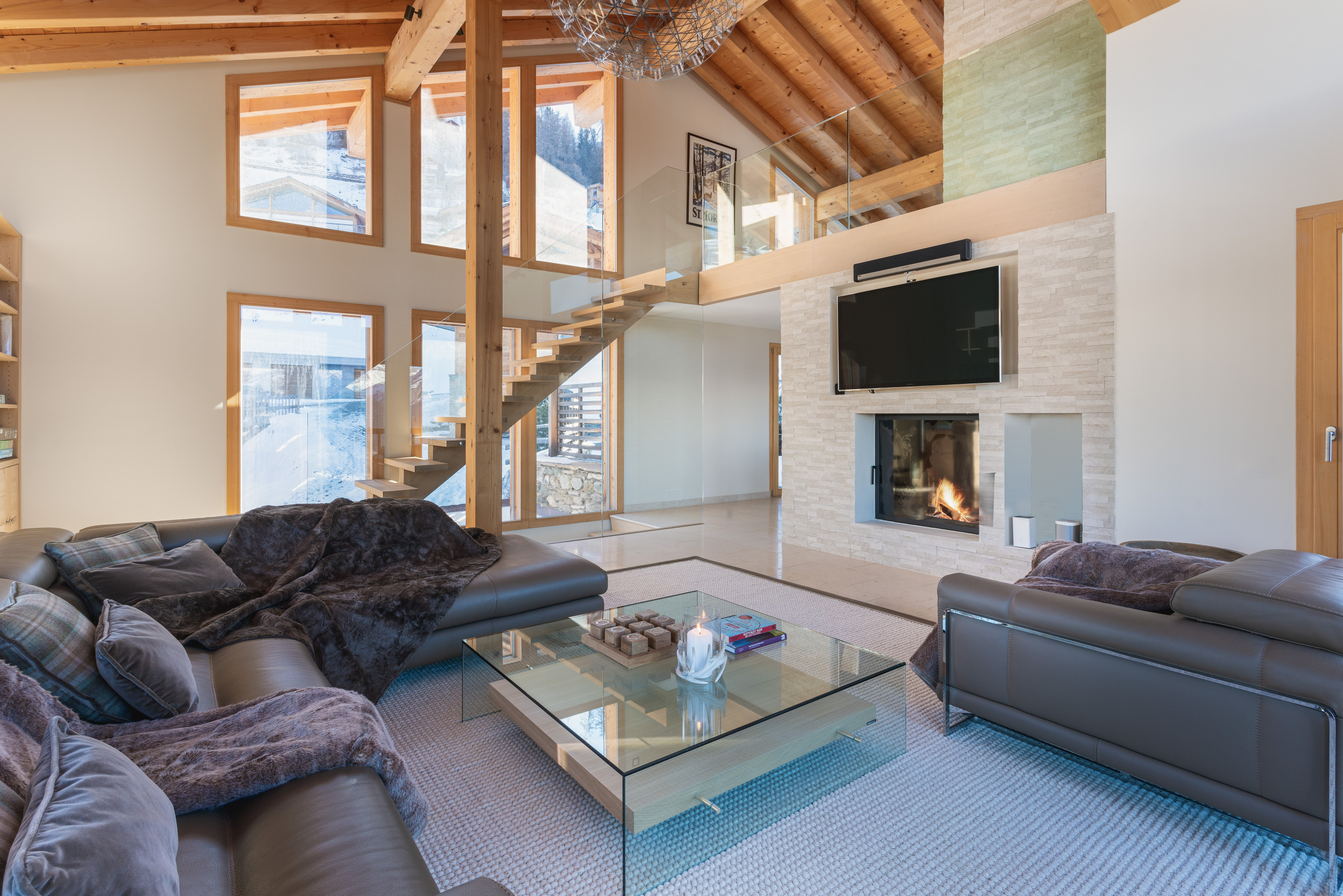 Diese perfekt positionierte Skihütte verkörpert den wahren Geist des Lebens in den Alpen. Über drei Hauptetagen angeordnet, wurde die oberste Ebene für Unterhaltung und Entspannung gestaltet. Mit ihrer beeindruckenden doppelten Deckenhöhe bildet dieser mehrdimensionale Raum das Prunkstück des Hauses.