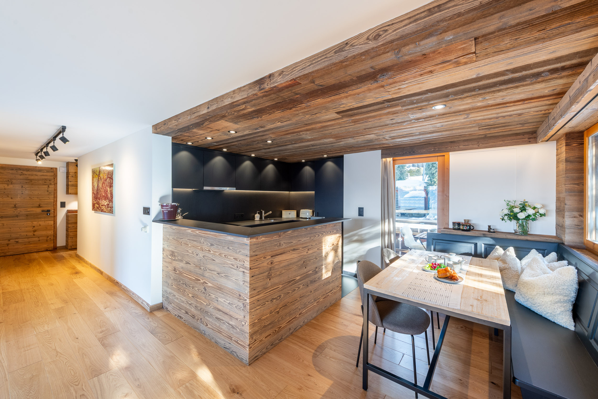 Pin Arole 1 ist eine hervorragende Drei-Zimmer-Wohnung im ersten Stock eines traditionellen Holzchalets. Die Einrichtung ist schlicht, aber gemütlich, mit einer voll ausgestatteten Küche. Die Lage ist sowohl ruhig als auch günstig, da sie an einer Nebenstraße 400 m von der Hauptliftstation in Médran entfernt liegt. Der nach Süden ausgerichtete Balkon bietet spektakuläre, ungehinderte Blicke auf die Berge.