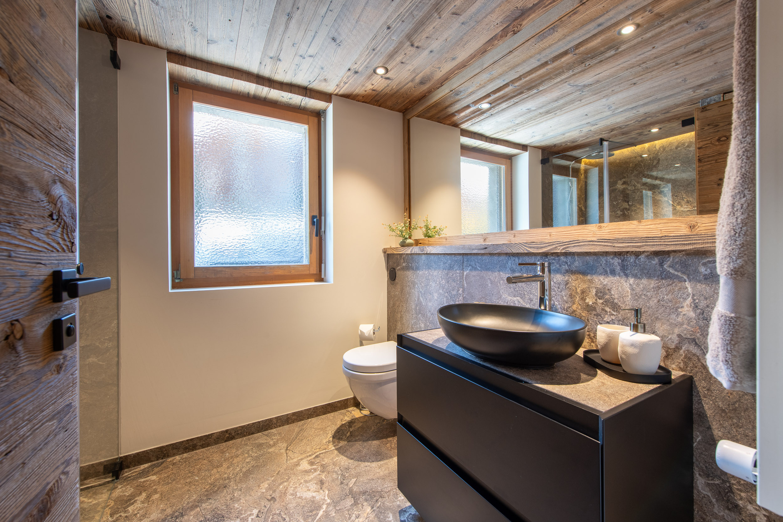 Diese Immobilie befindet sich im Erdgeschoss eines traditionellen Schweizer Chalets und hat eine Fläche von 80m2 und umfasst: