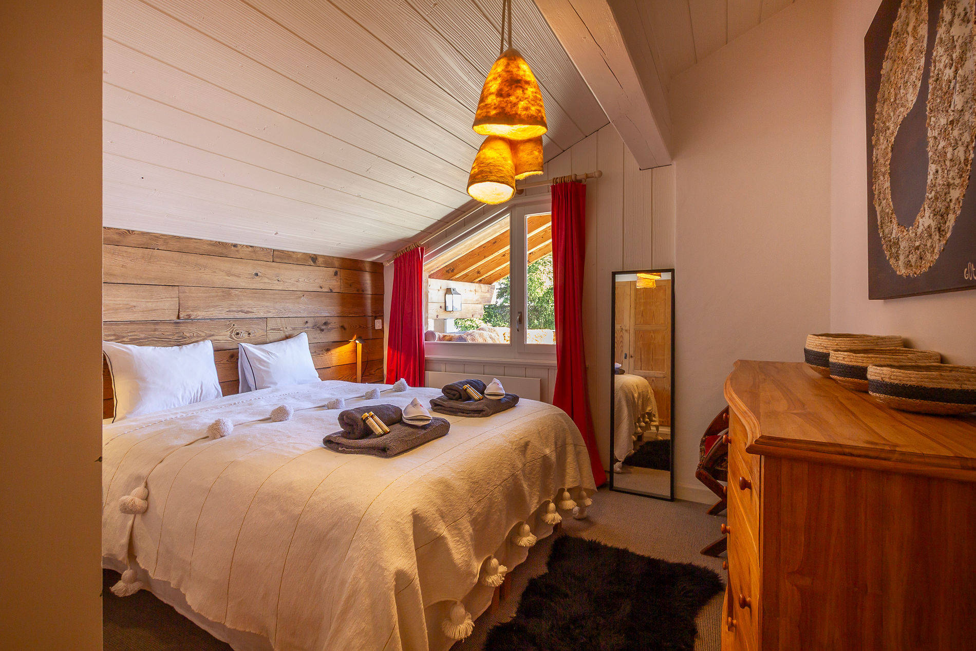 • Ein Schlafzimmer mit Doppelbett und eigenem Bad/WC