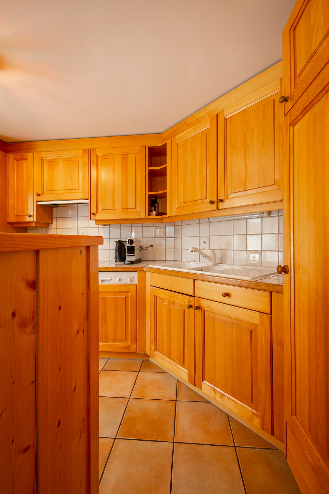 PIN AROLE 2 is a great value three bedroom apartment on the first floor of a traditional timbered chalet. Furnishings are simple but comfortable with a fully equipped kitchen. The location is both quiet and convenient, being on a secondary road 400m from the main lift station at Médran. The south-facing balcony gives spectacular unobstructed views of the mountains.