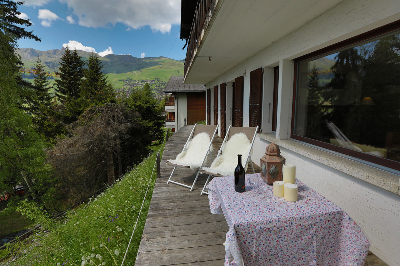 Chalet LE DAHU is a traditional wooden chalet that has been divided into two apartments. The two-bedroom apartment occupies the ground floor of a typically-alpine detached chalet, with a large south-facing terrace providing stunning mountain views.