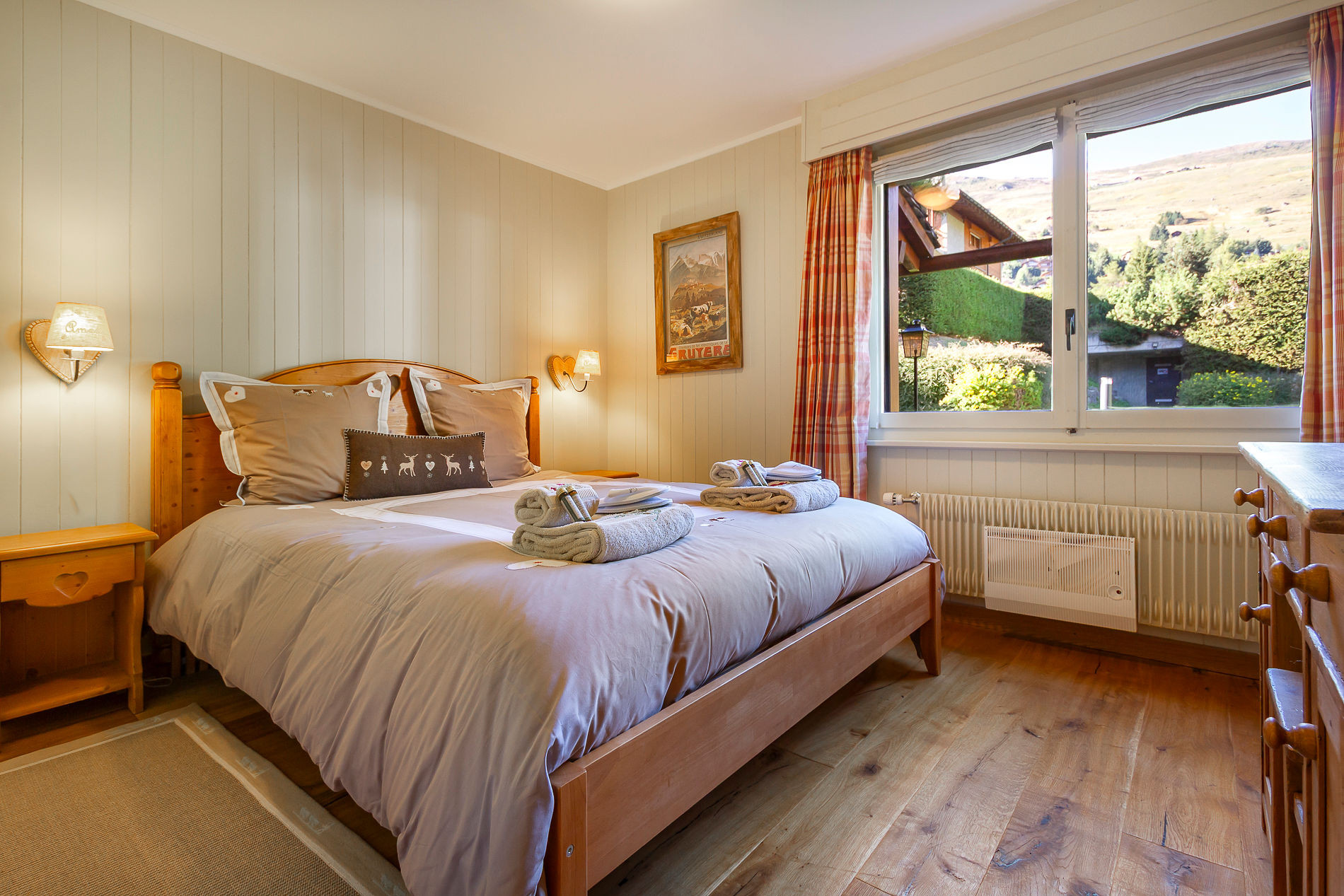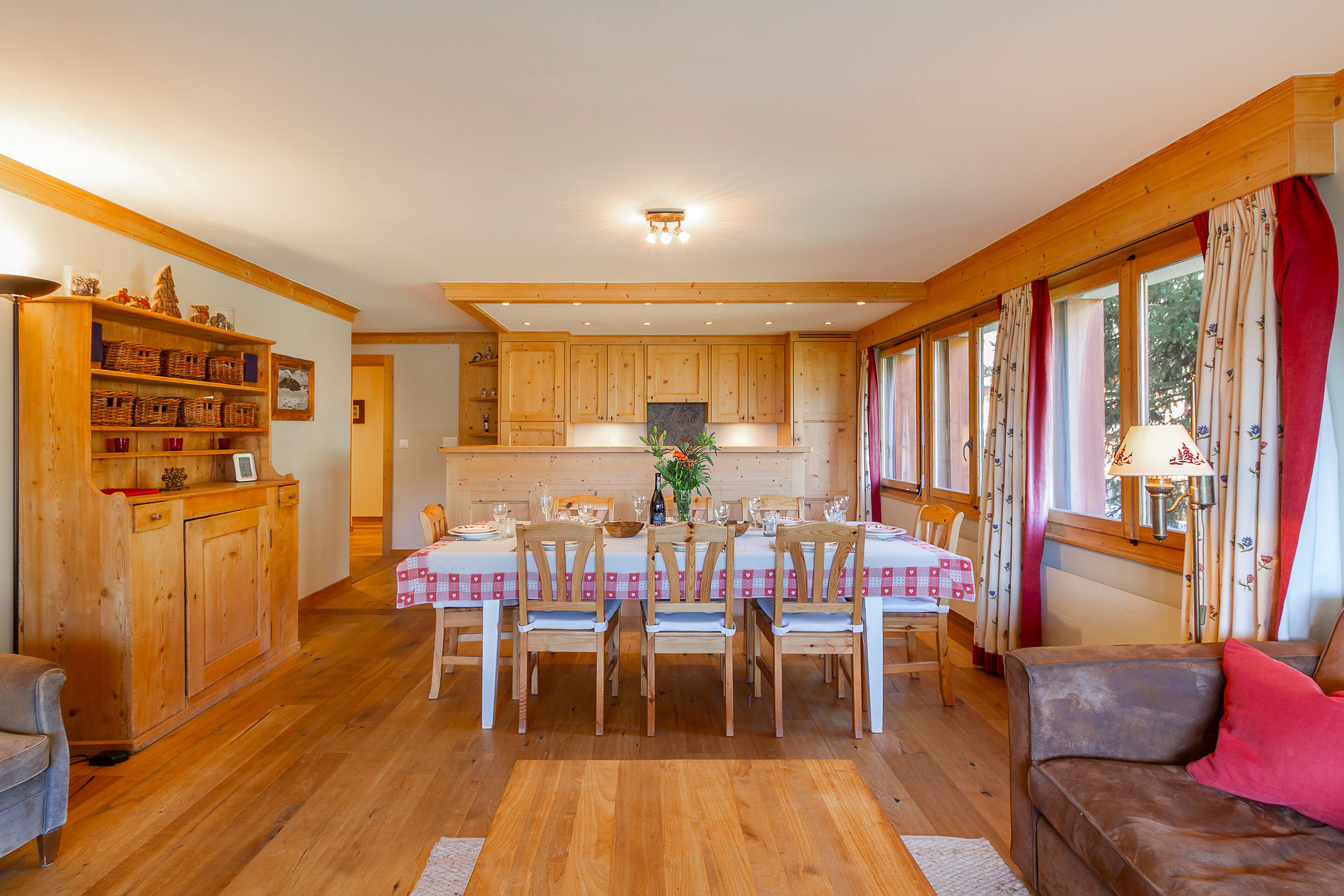 A spacious three-bedroom apartment exuding alpine charm with beautiful view over the surrounding mountains.