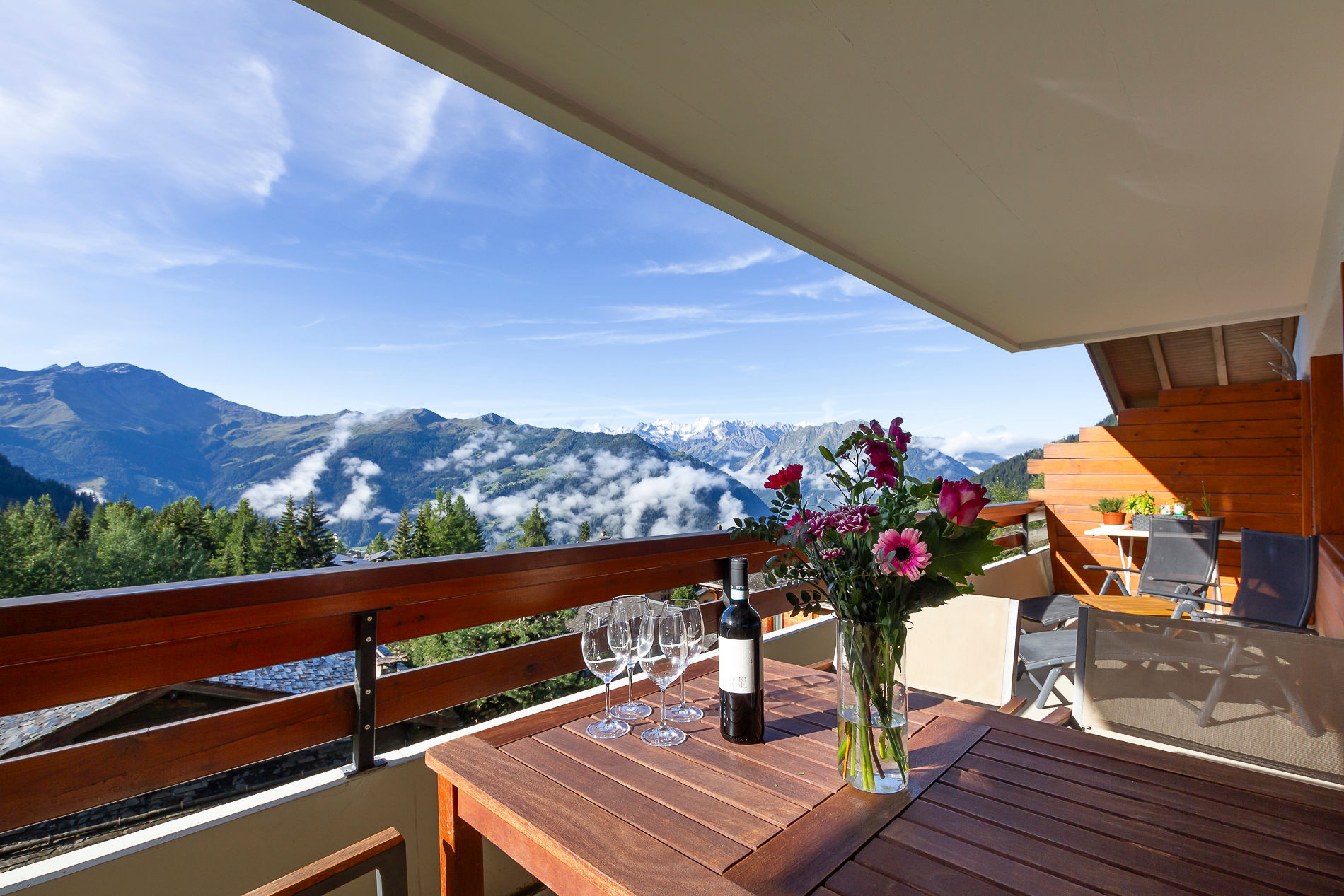 • South-facing balcony with breathtaking view over the Combins