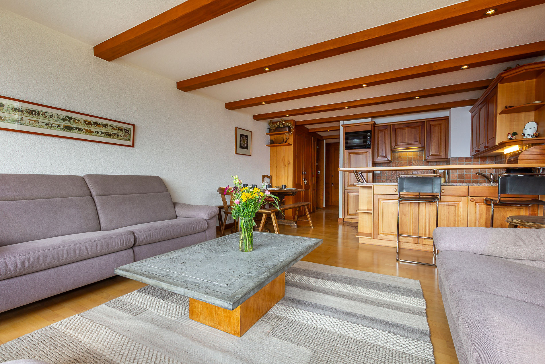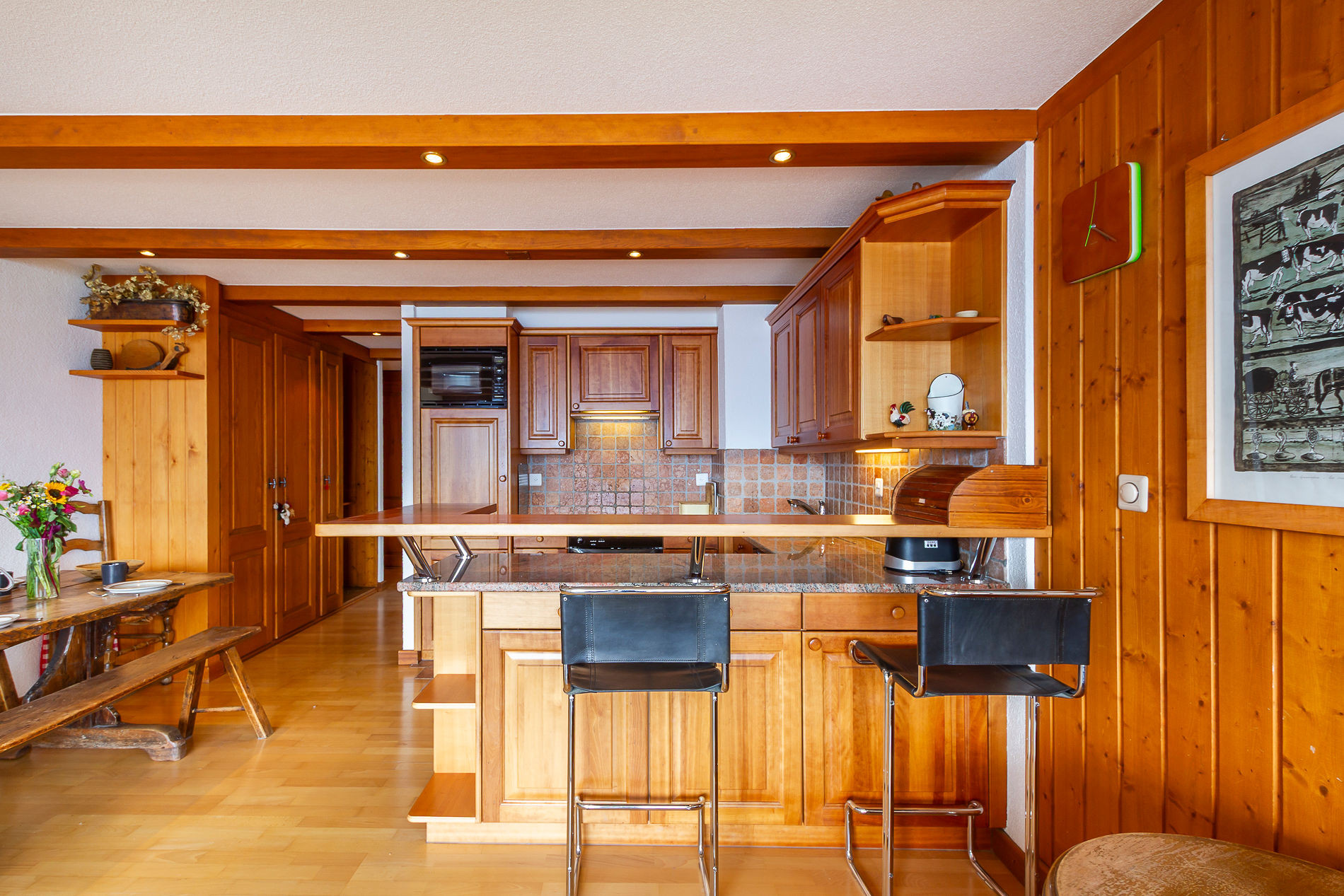 Mondzeu D58 es un encantador apartamento de tres dormitorios con capacidad para cinco personas. Ofrece magníficas vistas de los Alpes desde su balcón orientado al sur y su sala de estar. En la planta baja de la residencia hay una piscina cubierta, una zona de fitness y una sauna, que los huéspedes pueden disfrutar de forma gratuita.