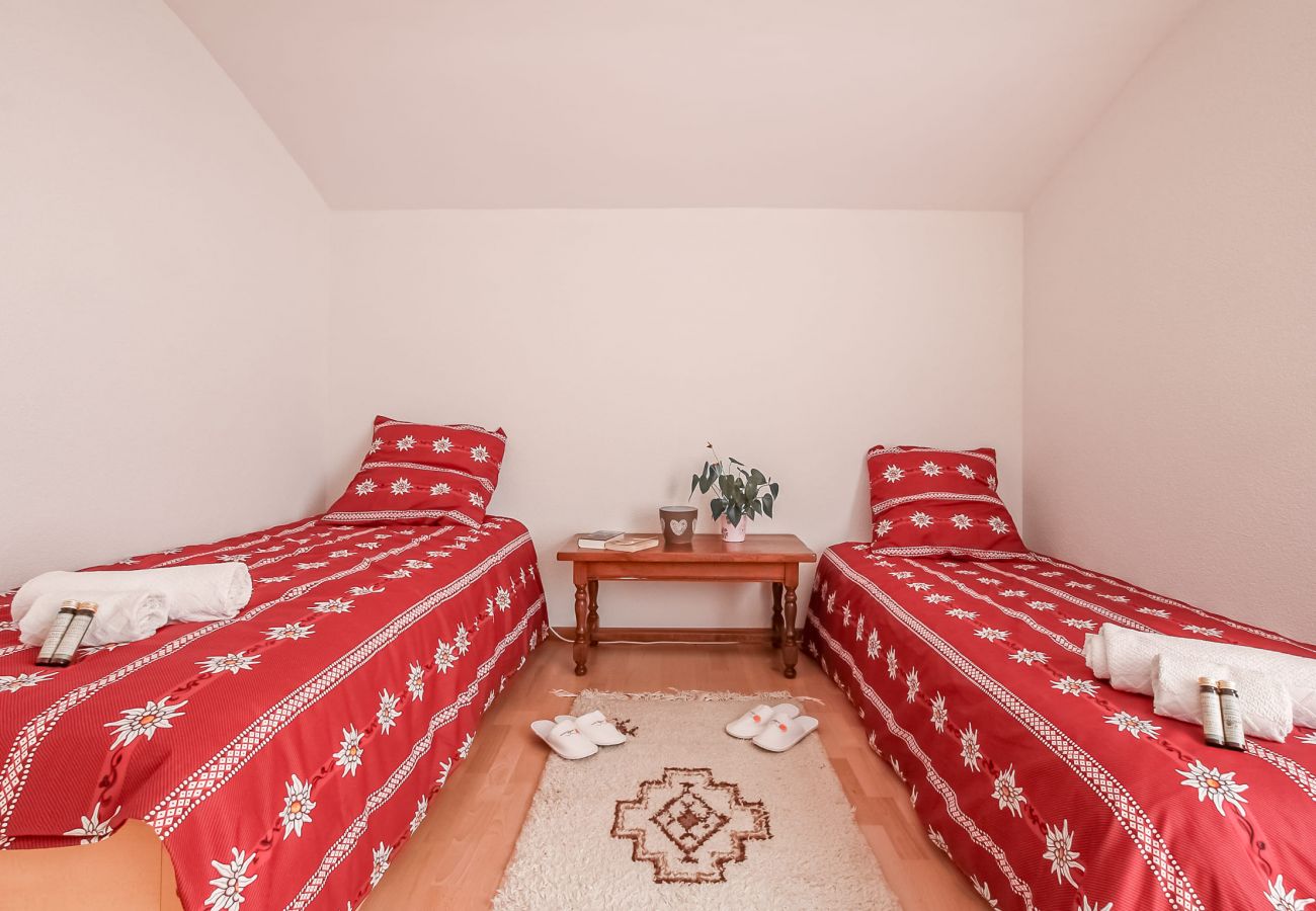 • Un dormitorio con dos camas individuales y una cama cigüeña