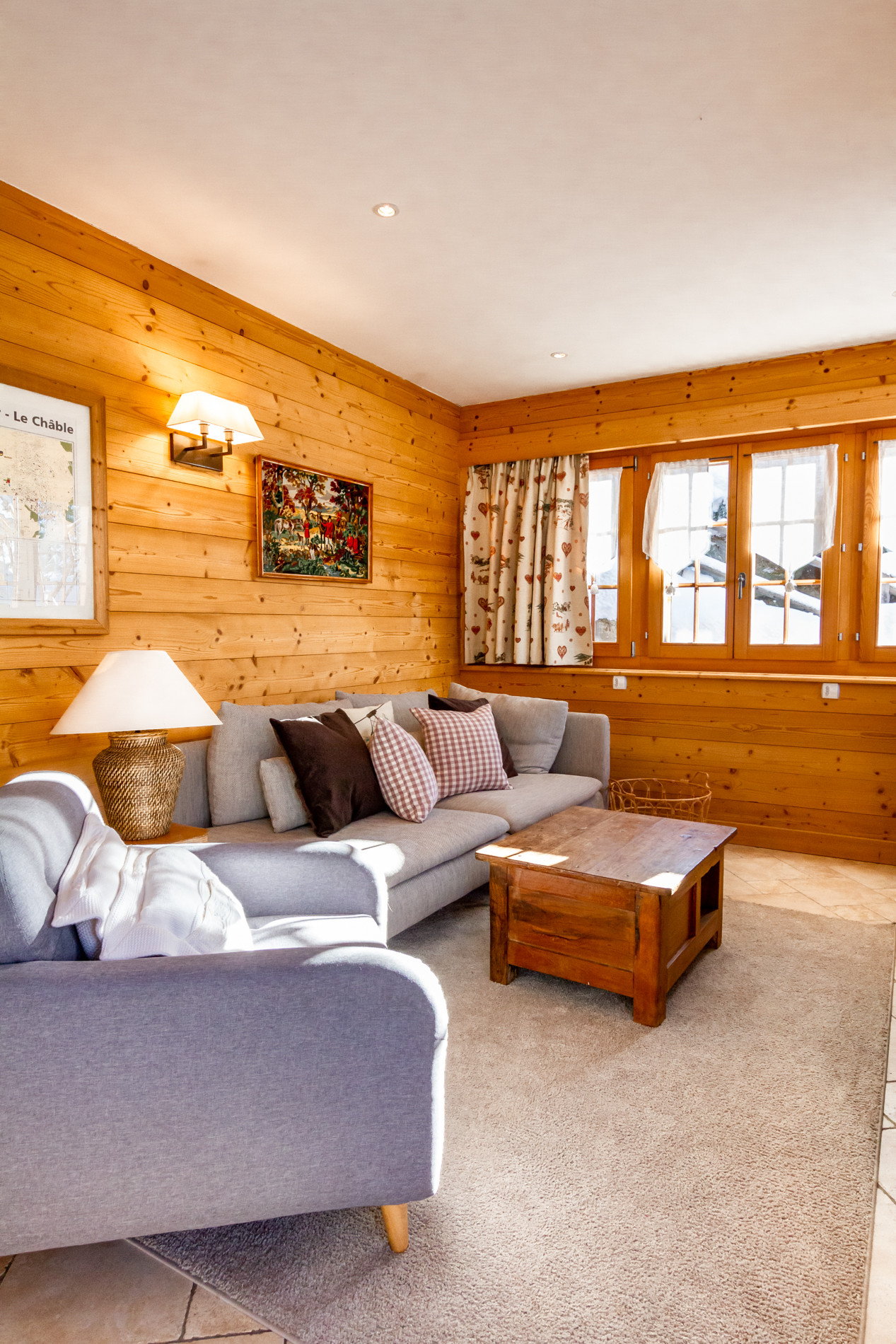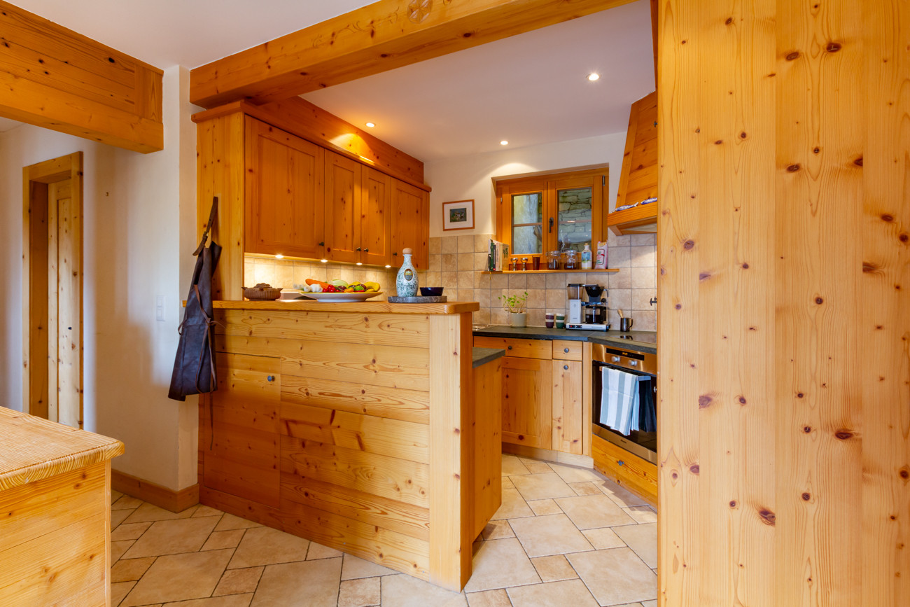Un mobiliario elegante combinado con elementos típicos de montaña y una iluminación sutil crean un ambiente cálido y acogedor en el salón. Una gran chimenea y cómodos asientos contribuyen a la máxima relajación. Una gran terraza orientada al oeste, con vistas a Pierre Avoi, ofrece mucho espacio para disfrutar del aire libre o para que jueguen los niños.