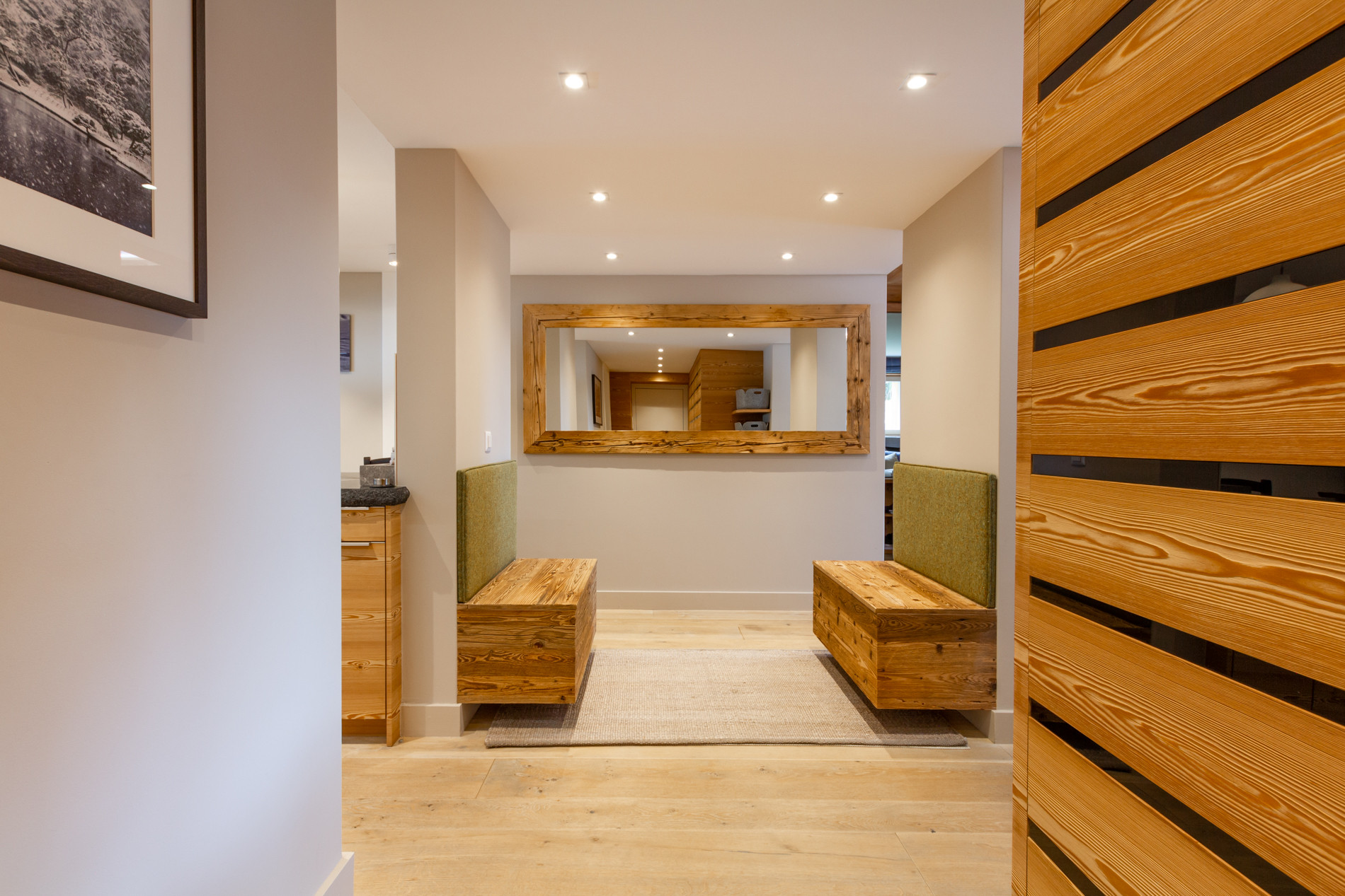 Répartie sur un seul niveau, cette propriété somptueusement aménagée dispose d’un superbe espace à vie ouvert. Le mobilier chic s’intègre parfaitement bien au bois traditionnel, créant ainsi une atmosphère alpine moderne. La grande cheminée du salon ainsi que de confortables sièges invitent à la relaxation ultime. De grandes fenêtres s’ouvrent sur un grand jardin privé orienté à l’est et au sud, offrant ainsi un espace exclusif pour profiter du soleil ou pour que les enfants puissent y jouer.