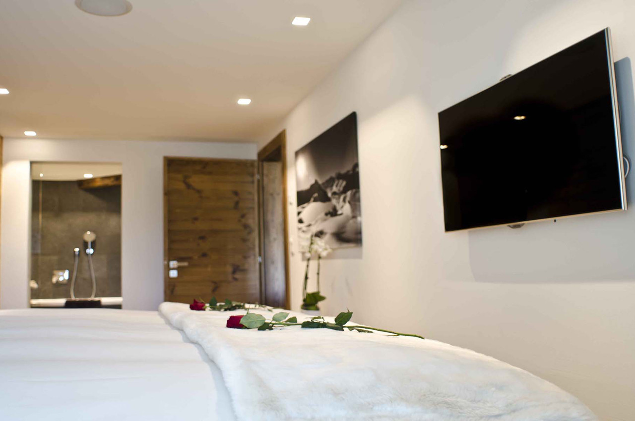 Les deux étages disposent d’un petit balcon exposé au sud, garantissant un ensoleillement illimité et une superbe vue sur le massif des Combins.